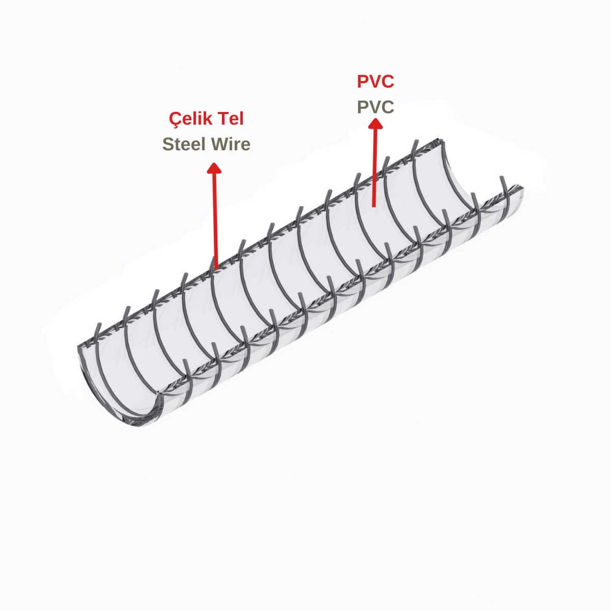 * Maksimum esneklik, kırılmaya karşı dayanıklı galvanizli çelik telli şeffaf PVC malzemeye sahiptir.